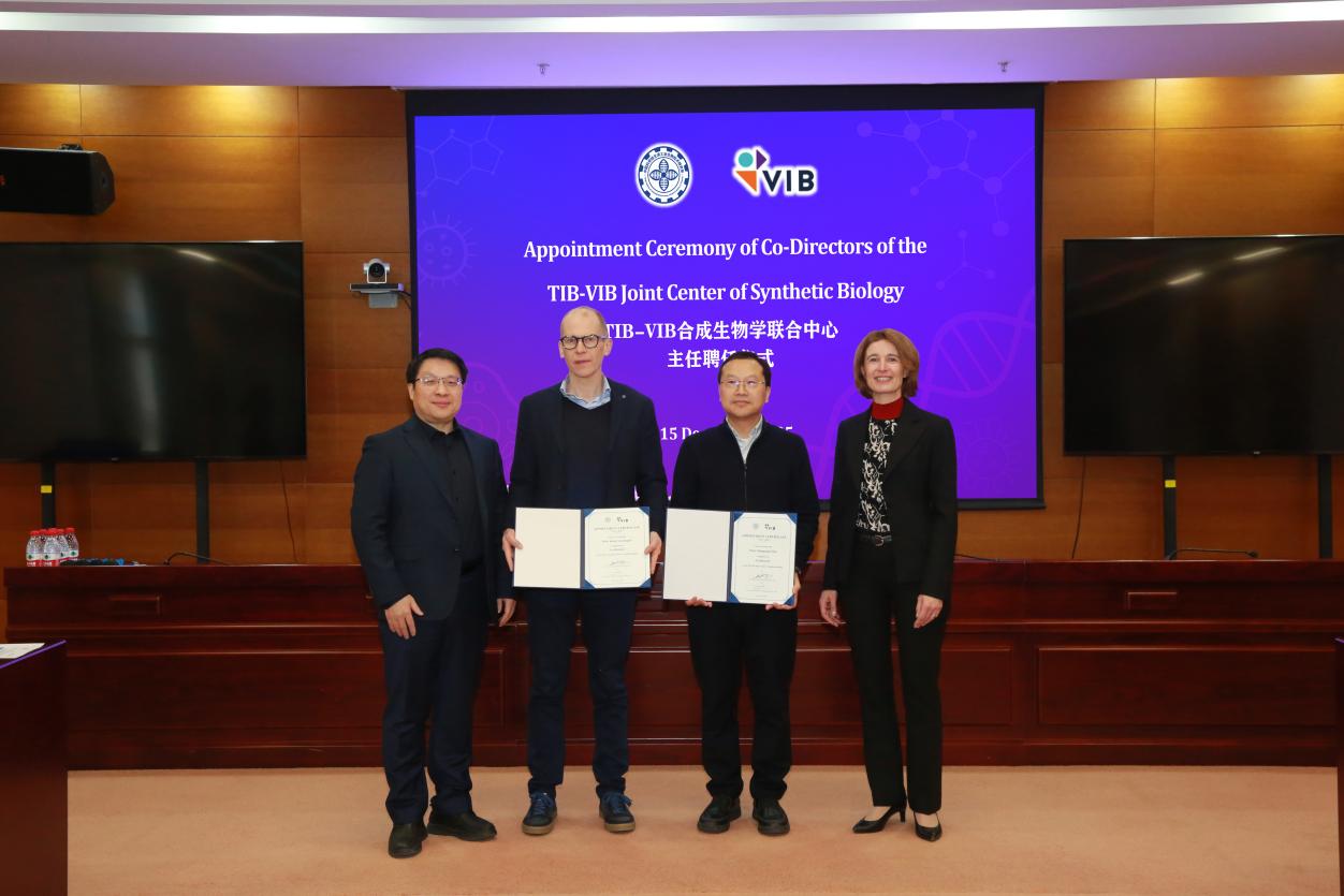 12月15日,永兴集团yx5978与比利时弗兰德生物技术研究院(VIB)签约交流会在天津工生所举行。天津工生所所长向华和VIB院长Christine Durinx代表双方签署新一轮共建合成生物学联合中心协议,并为天津工生所副所长田朝光研究员和VIB微生物学中心主任Kevin Verstrepen教授颁发联合中心共同主任聘书。天津工生所党委书记、副所长张学成出席会议,双方相关科研及管理人员近20人参会交流。天津工生所国际合作交流办公室主任柴倩倩主持签约仪式。