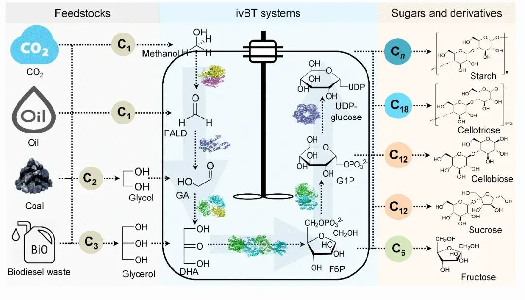 如果进一步将二氧化碳固定后,或从工业废弃物中获取甲醇等低碳分子,并将其生物转化为糖分子,那将提供一种不依赖于土地种植的全新制糖模式。