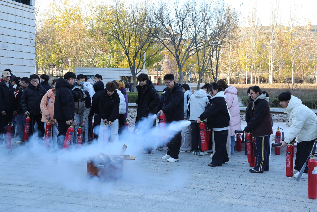 当日14:00,随着手动报警按钮按下,演习正式开始。研究所微型消防站人员收到警报,迅速赶往起火现场进行紧急处置,应急指挥部迅速启动应急预案,张学成就抢险救援、警戒疏散、后勤保障、医疗救护、通信联络和事故报告等方面工作现场指挥部署,推演了应急处置全流程,并就突发事件应急处置流程的细节和衔接做了详细总结和点评。特别强调,要结合研究所近期发生的安全事件,认真梳理总结,针对应急处置各环节可能存在的风险及漏洞,制定合理的应对措施,切实保障安全。14:30,消防应急广播和声光报警设备紧急启动,警戒疏散小组引导大家5分钟内沿楼梯有序疏散至室外安全地带。随后,专业人员讲解了灭火器的使用须知和注意事项,并指导大家实际操作灭火器,进行灭火训练。最后,2025年新入所人员集中观看了安全用火用电警示教育宣传片。