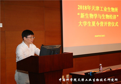 王钦宏代表研究所致开营辞。他希望各位营员通过参加本次夏令营,能够增进彼此了解和友谊,把个人发展与国家社会的发展紧密结合起来,攻坚创新,凝练自身的核心竞争力,在新生物学指导下的工业生物技术“产学研”科技创新链条上找准自己的位置,为实现中华民族的伟大复兴贡献一份力量!