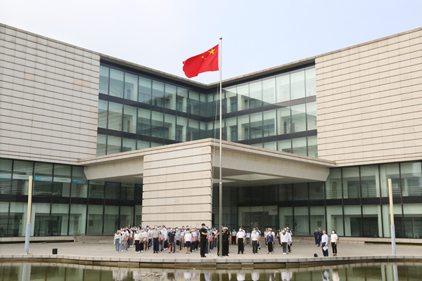 在雄壮的国歌声中,五星红旗冉冉升起,现场职工、学生庄严肃立,齐唱国歌,向国旗行注目礼,以崇高的敬意表达了对我们党和祖国的无限热爱和诚挚祝福。